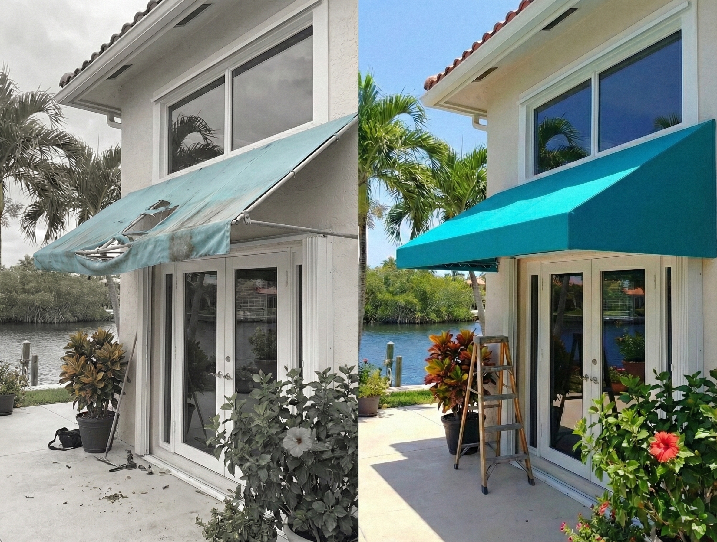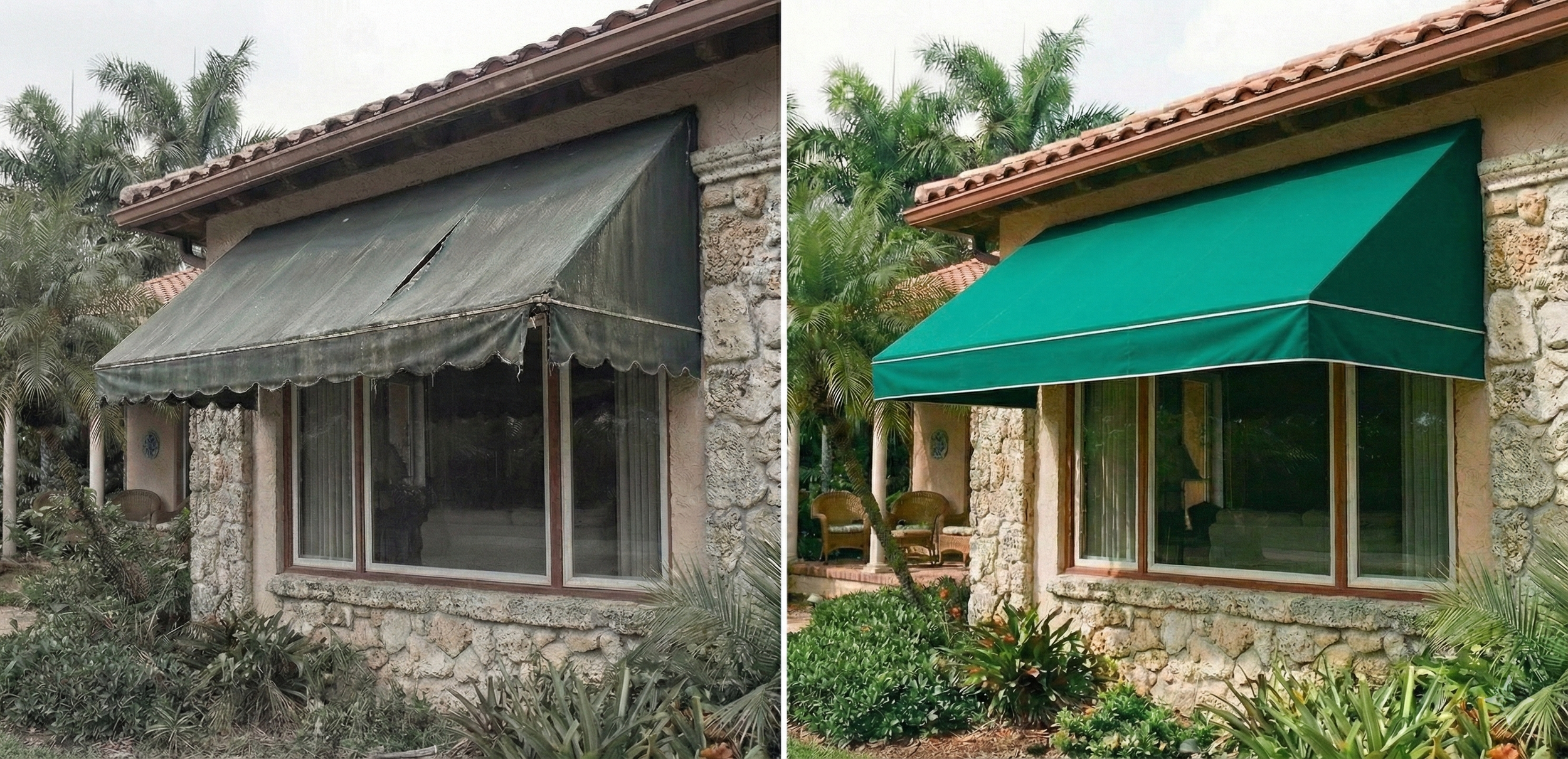 Give your house a total facelift with a high-quality fabric recover. Swapping out that shredded, faded, or dull canvas for fresh Sunbrella® is the ultimate hack for a brand-new look without the 'new frame' price tag! Give us a buzz at 727-528-3918, shoot an email to awntech@live.com, or click here to fill out our contact form and let's chat about your canopy!